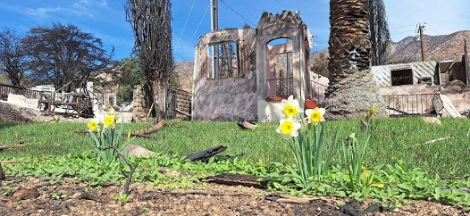 (Ten weeks on from the devastating Eaton/Altadena fires ā daffodils Mum planted years ago pop against her red front steps ā new life amidst the ruins!)